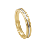 O friso central em ouro branco confere um efeito visual distinto, dando um toque contemporâneo ao design clássico, enquanto o acabamento polido e a combinação dos dois tons de ouro tornam essa aliança uma peça atemporal e versátil, perfeita para selar momentos importantes.