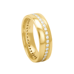 Fabricada em ouro 18K de alta qualidade, a aliança é durável e resistente, além de oferecer um brilho único que simboliza o compromisso e a eternidade. O design é ao mesmo tempo elegante e contemporâneo, sendo a escolha ideal para noivados, casamentos ou para quem deseja uma joia marcante e cheia de personalidade.