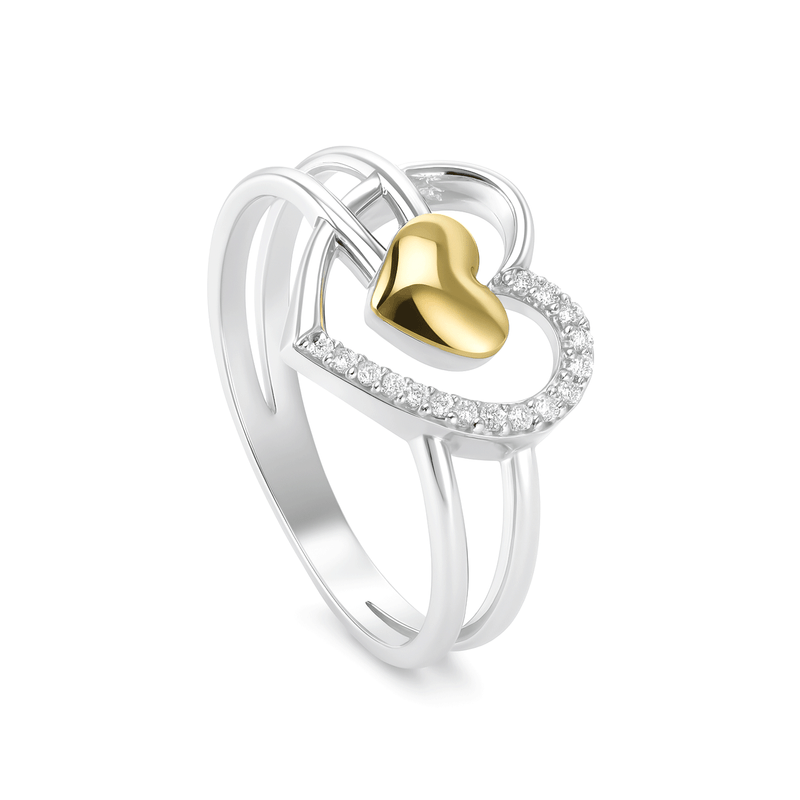 Anel Aro Duplo e Coração em Ouro 10K e Prata 925