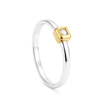 Anel em Ouro Branco com Quadrado em Ouro 18k e Diamante 1,5 pts. Possui acabamento polido.