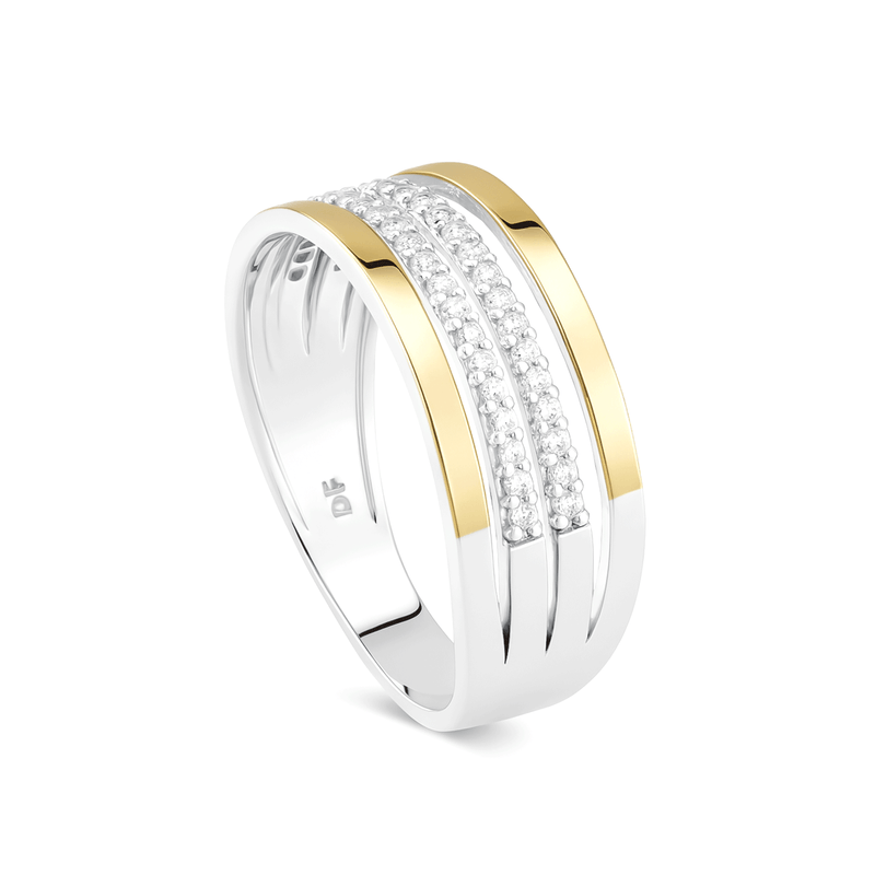 Anel Fileiras com Zircônias em Ouro 10K e Prata 925