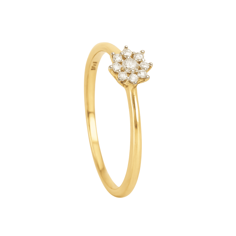 Anel Flor com Diamentes e Brilhantes em Ouro 18K
