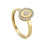 Anel Oval Acetinado com Diamantes em Ouro 18K