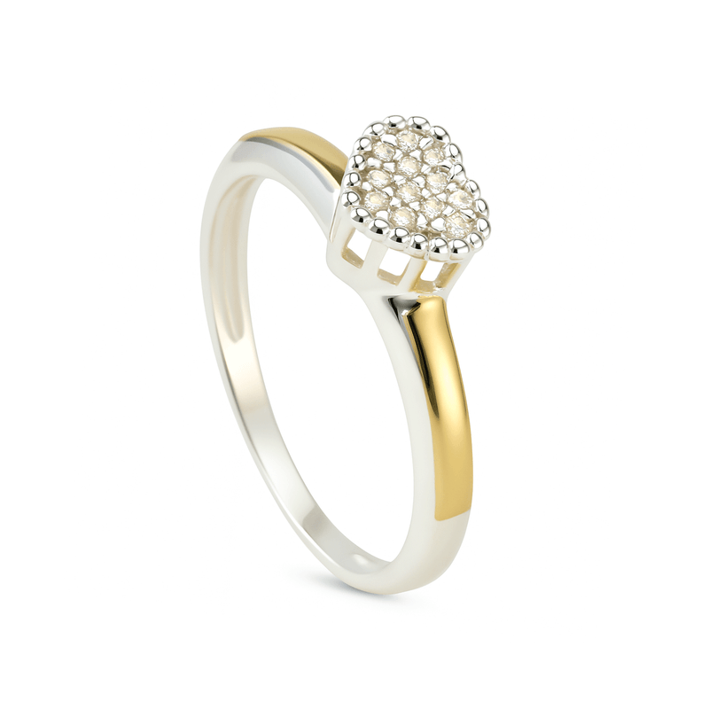 Anel Pavê Coração em Ouro 10K e Prata 925