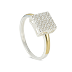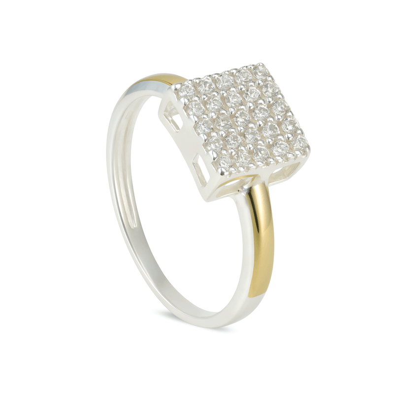 Anel Pavê Quadrado em Ouro 10K e Prata 925