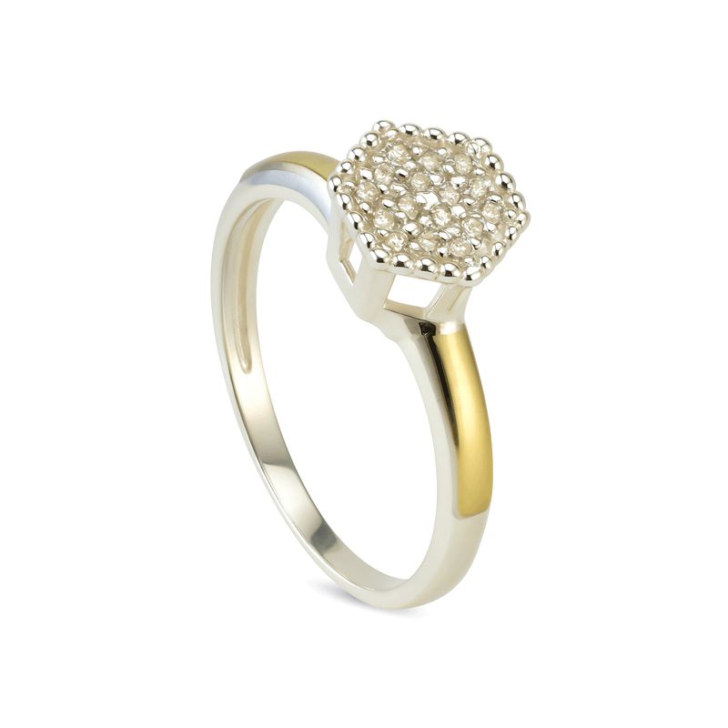Anel Pavê Sextavado em Ouro 10K e Prata 925