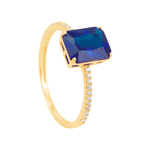 Anel Retângulo na Cor Safira Aro Cravejado em Ouro 18K