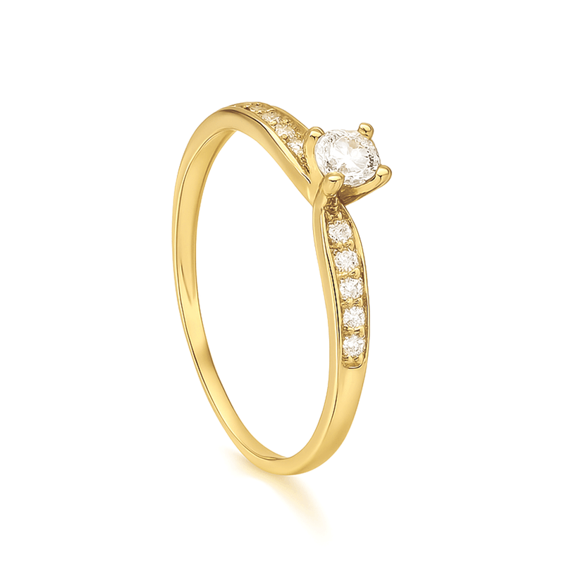 Anel Solitário 3,5MM com Zircônias em Ouro 18K