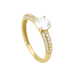 Anel Solitário Aro com Zircônias em Ouro 10K