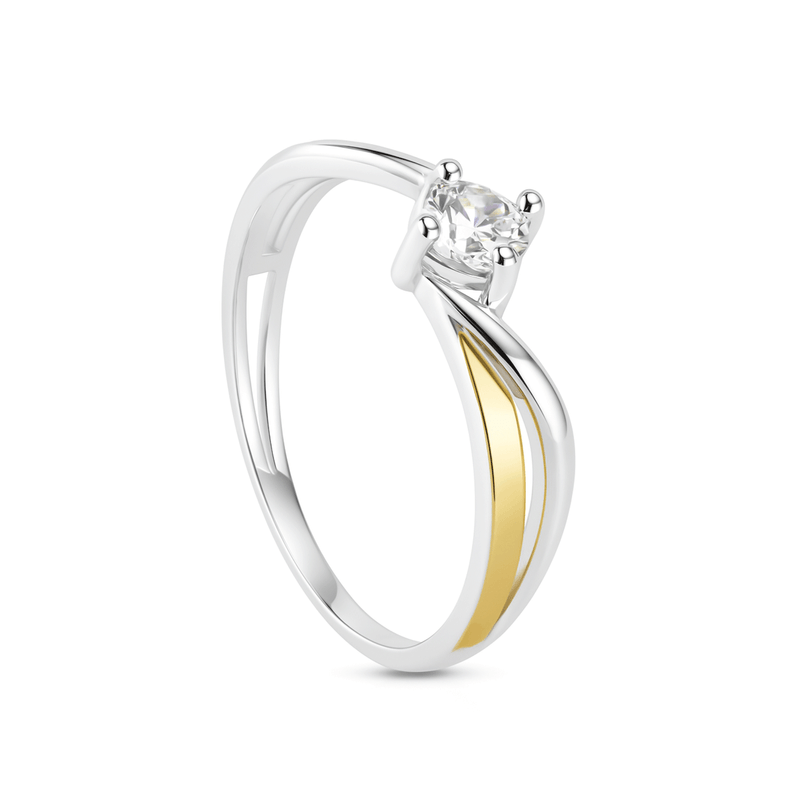 Anel Solitário Aro Dplo em Ouro 10K e Prata 925