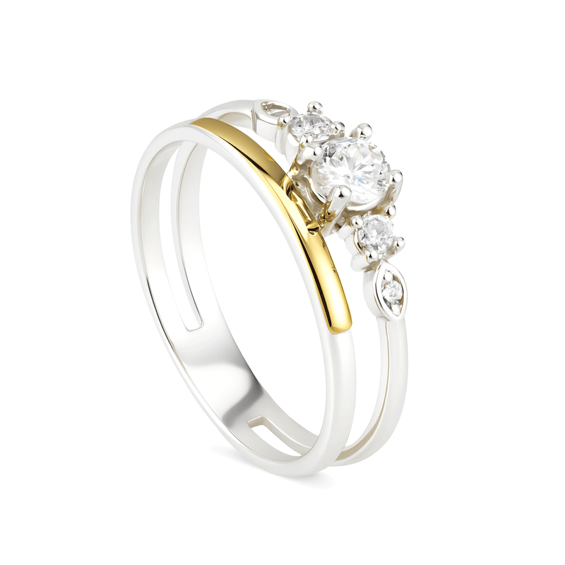 Anel Solitário Aro Duplo em Ouro 10K e Prata 925