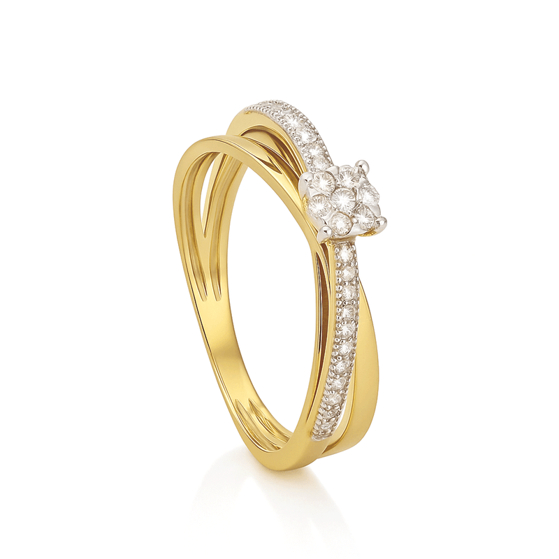 O ouro 18K não só garante durabilidade, mas também um acabamento impecável que valoriza ainda mais os diamantes, tornando essa joia uma opção sofisticada para ocasiões especiais. Seja para marcar um momento único ou para complementar seu estilo com uma peça de luxo, esse anel se torna o centro das atenções, refletindo elegância e exclusividade.