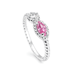 Anel Zircônia Navete Rosa Aro Torcido em Prata 925