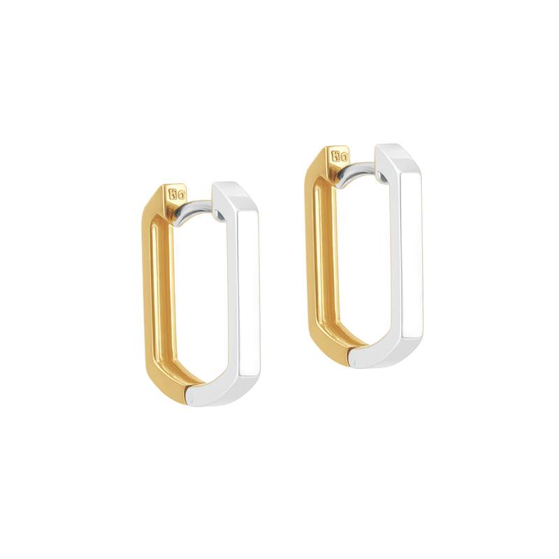 Argola Retangular Fio Quadrado Bicolor em Ouro 18K.