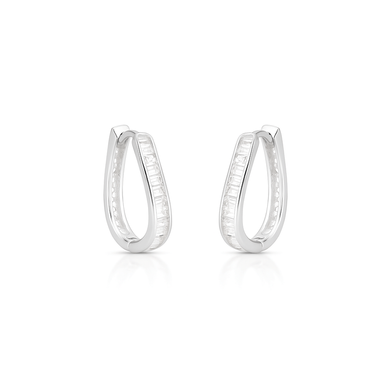Brinco Argola Ondulada Zircônia Baguete em Prata 925
