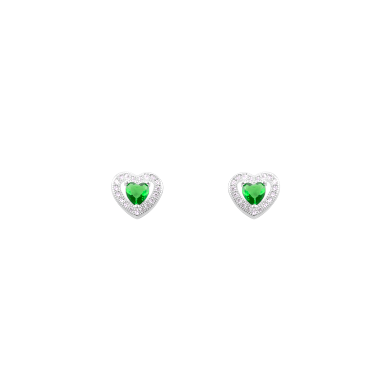 Brinco Coração com Zircônia Verde em Prata 925