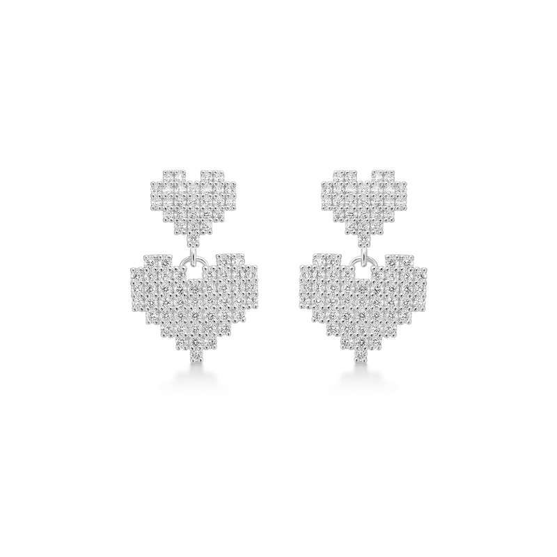 Brinco Coração Duplo Cravejado em Prata 925