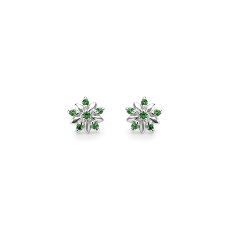 Brinco Flor Zircônias Verde Claro em Prata 925