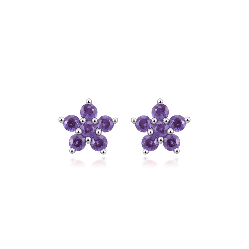 Brinco Florzinha com Zircônia Lilás em Prata 925