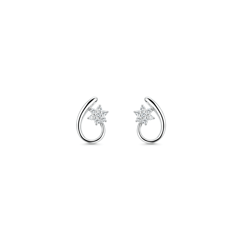 Brinco Gota Vazada com Flor de Zircônias em Prata 925