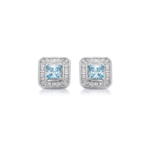 Brinco Quadrado Zircônia Central Azul em Prata 925
