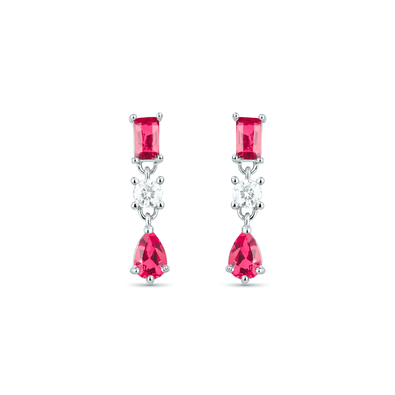 Brinco Retangular e Gota de Zircônia Rosa em Prata 925