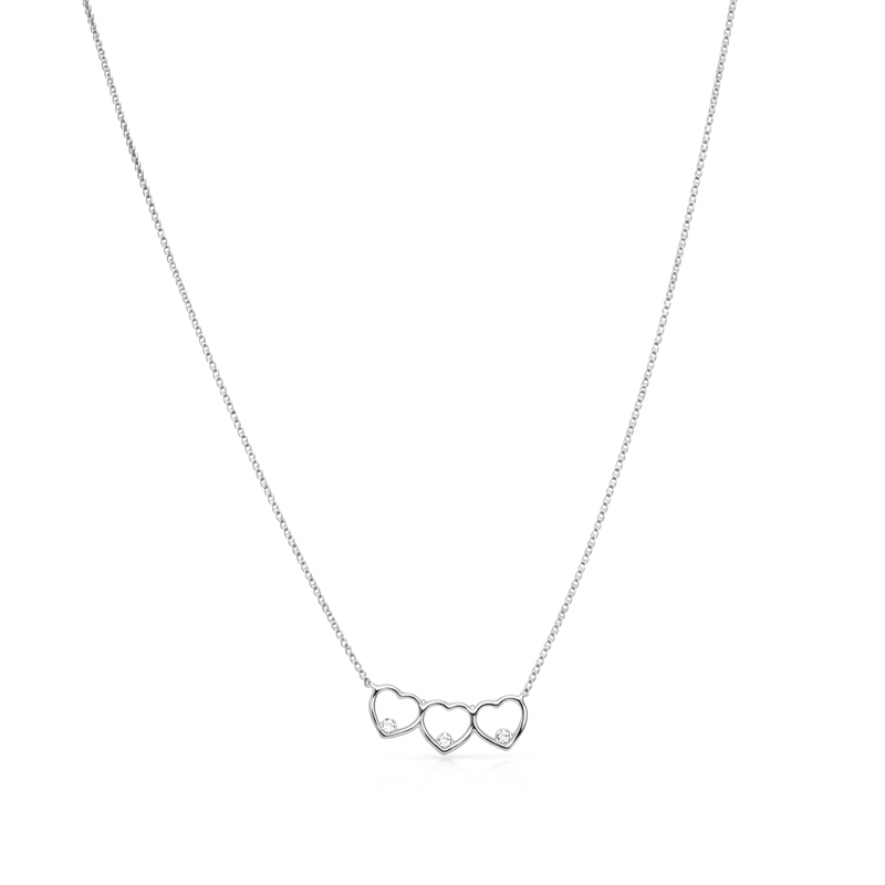 Colar 3 Corações com Ponto de Zircônia em Prata 925