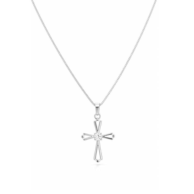 Colar Cruz com Zircônias em Prata 925