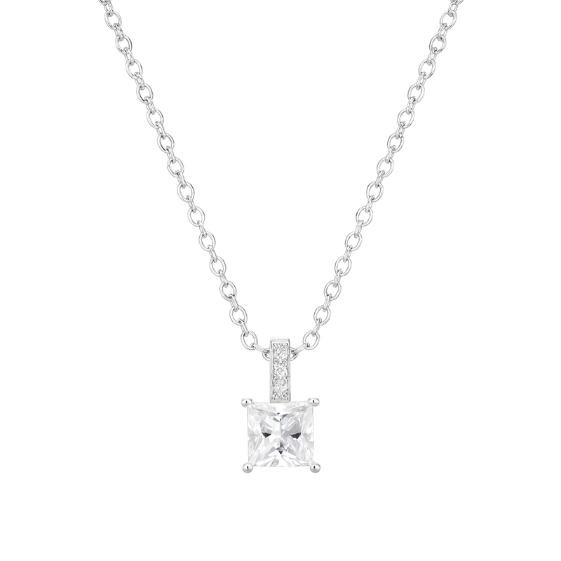 Colar Quadrado Moissanite de 5x5mm 0,8 ct em Prata 925, uma peça que traduz elegância luminosa e sofisticação em cada detalhe. O moissanite Quadrado, com tamanho de 5x5mm e aproximadamente 0,8 ct, reflete a luz com intensidade excepcional, criando um brilho fascinante e comparável ao dos diamantes. A prata 925 realça ainda mais a lapidação da pedra, trazendo um contraste sutil e sofisticado, perfeito para quem busca beleza refinada com toque moderno. Versátil, delicado e irresistivelmente elegante, este colar é a escolha ideal para valorizar qualquer produção, seja no dia a dia ou em momentos especiais que merecem uma joia à altura.