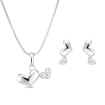 Conjunto Coração Duplo com Zircônias em Prata 925