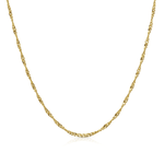 Corrente elos Singapura de 45 cm em ouro 10K é uma joia delicada e elegante, perfeita para quem busca sofisticação com leveza e brilho diferenciado. Seu design torcido em elos Singapura cria um efeito luminoso encantador, que se destaca mesmo quando usada sozinha, enquanto o comprimento de 45 cm proporciona um caimento ideal no colo. Confeccionada em ouro 10 quilates, oferece durabilidade, conforto e excelente custo-benefício, sendo uma escolha versátil para o uso diário, para compor com pingentes ou para presentear com charme e bom gosto.