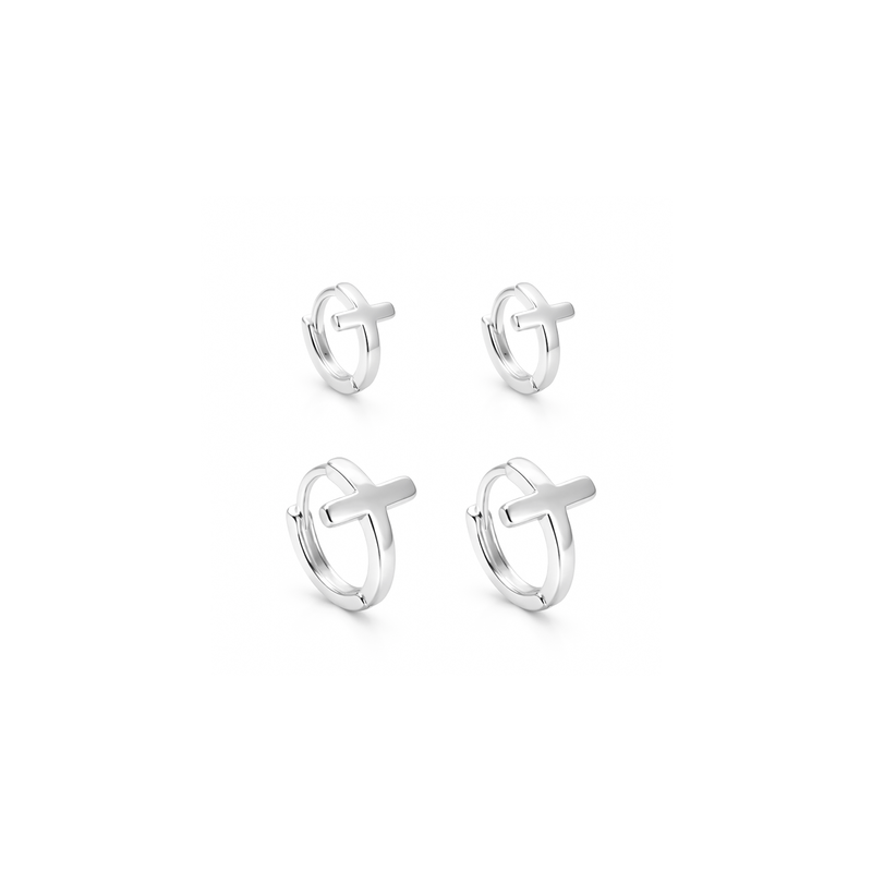 Dupla Argolas Click Cruz Lisa em Prata 925