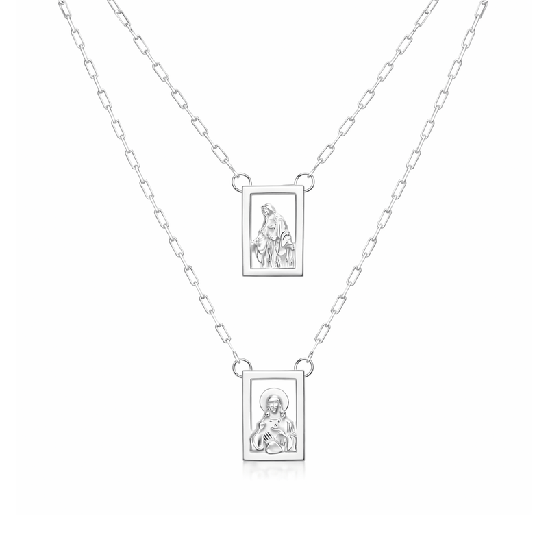 Escapulário N.Sra das Graças e Sagrado Coração em Prata 925