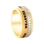 Modernas e sofisticadas, estas alianças giratórias em ouro 18K unem design inovador e simbolismo de eternidade. O acabamento tricolor acrescenta charme e exclusividade, tornando cada peça única.
