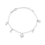 Pulseira Infantil Coração e Ponto de Luz em Prata 925