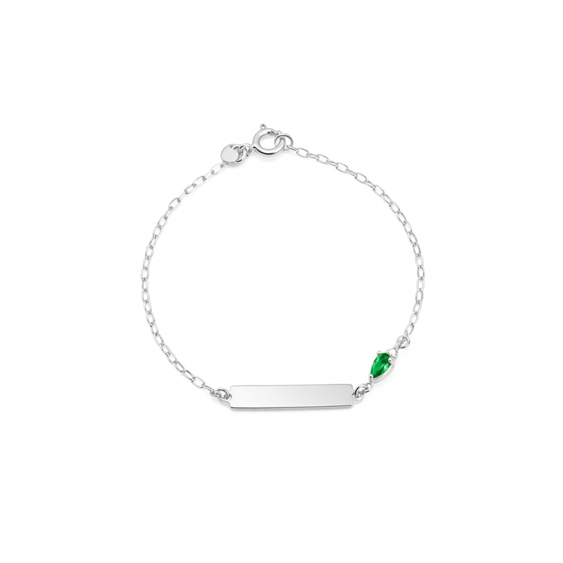 Pulseira Infantil Placa com Zircônia Verde em Prata 925