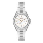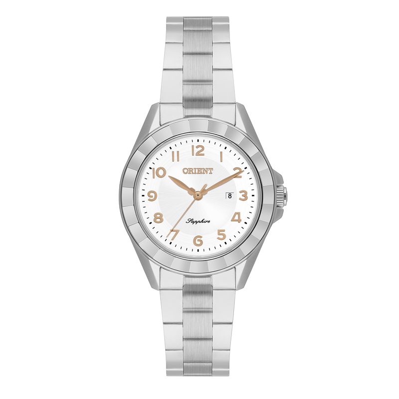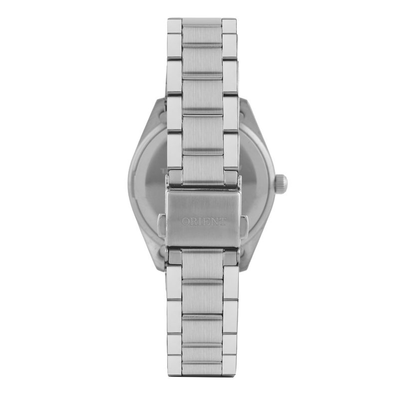 Relógio Feminino Orient Analógico Prata - FBSS1205 S2SX. É um relógio com 33mm de largura. Possui resistência à água de 5atm. Com essa classificação o relógio é resistente às ocasiões mais comuns como chuva lavar as mãos e tomar banho de chuveiro por exemplo. Sua caixa e pulseira em aço, seu vidro é de cristal mineral e possui mostrador branco. Seu funcionamento é Analógico.