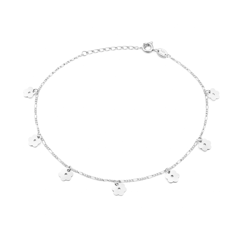 Tornozeleira com Florzinhas em Prata 925