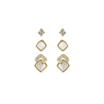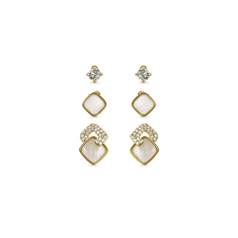 Trio Brincos Madrepérola e Zircônias em Banho de Ouro 18K